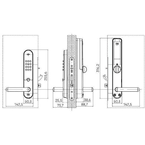 Säkert och smart kodlås för hemmet, optimerat för villa och radhus. Lås upp dörren med kod, nyckelbricka eller app, helt utan nyckel. Funktion för automatisk låsning, känn dig helt trygg med att dörren alltid är låst. Låset kan kopplas upp mot Wi-Fi (kräver Yale ConnectX Wi-Fi Bridge, ingår ej) för optimal och fullständig funktion. Du kan även kommunicera med låset direkt med din smartphone via Bluetooth. Drivs av 4 st 1,5 V AA-batterier. Kapslingsklass IP55 (utvändigt) och IP31 (invändigt).