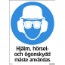 Skylt påbud hjälm, ögon- och hörselskydd måste användas